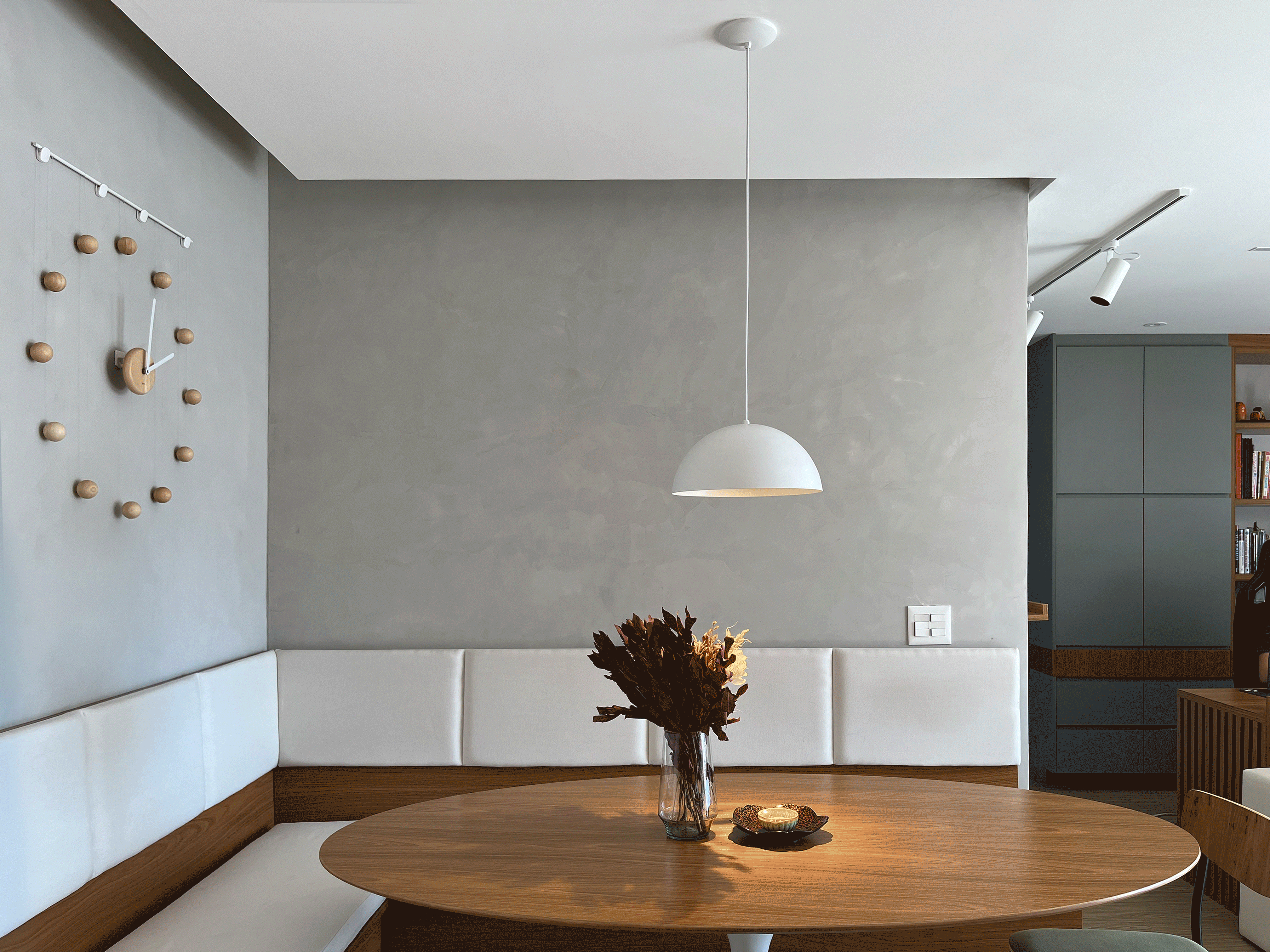 Reforma total em apartamento entregue pela construtora no bairro da Saúde em São Paulo. A paleta em sua base neutra e o uso de tons amadeirados, dá o apartamento um ar aconchegante, pretendido pelo cliente.
